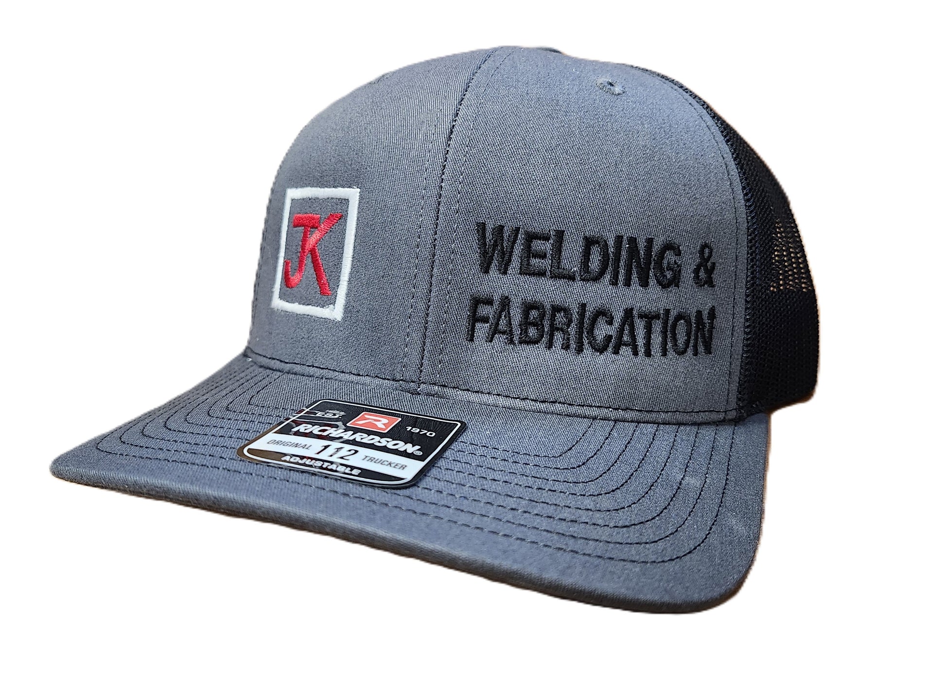 Richardson 112 Hat - Charcoal Panel Black Mesh - Large JK Logo and Welding & Fabrication